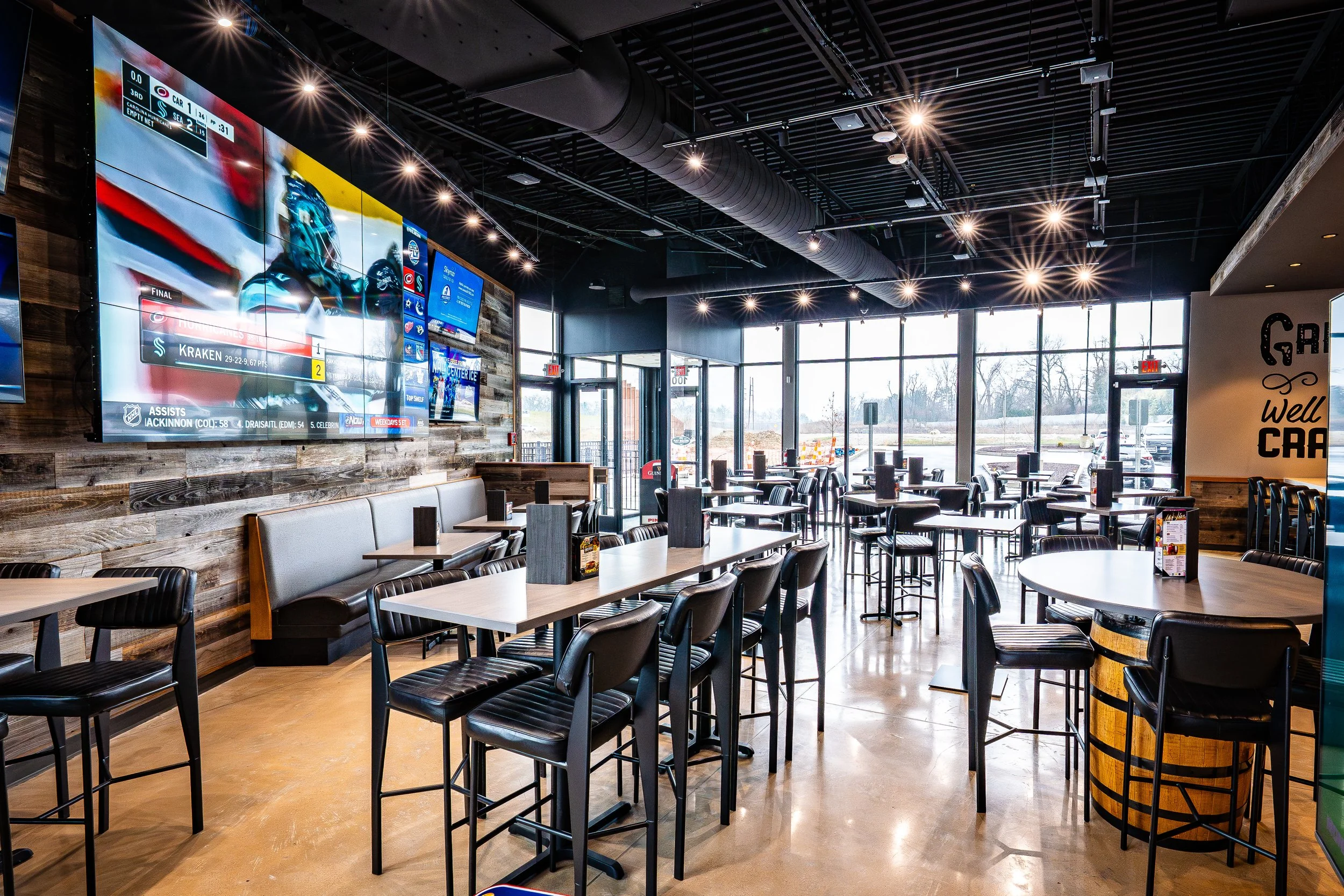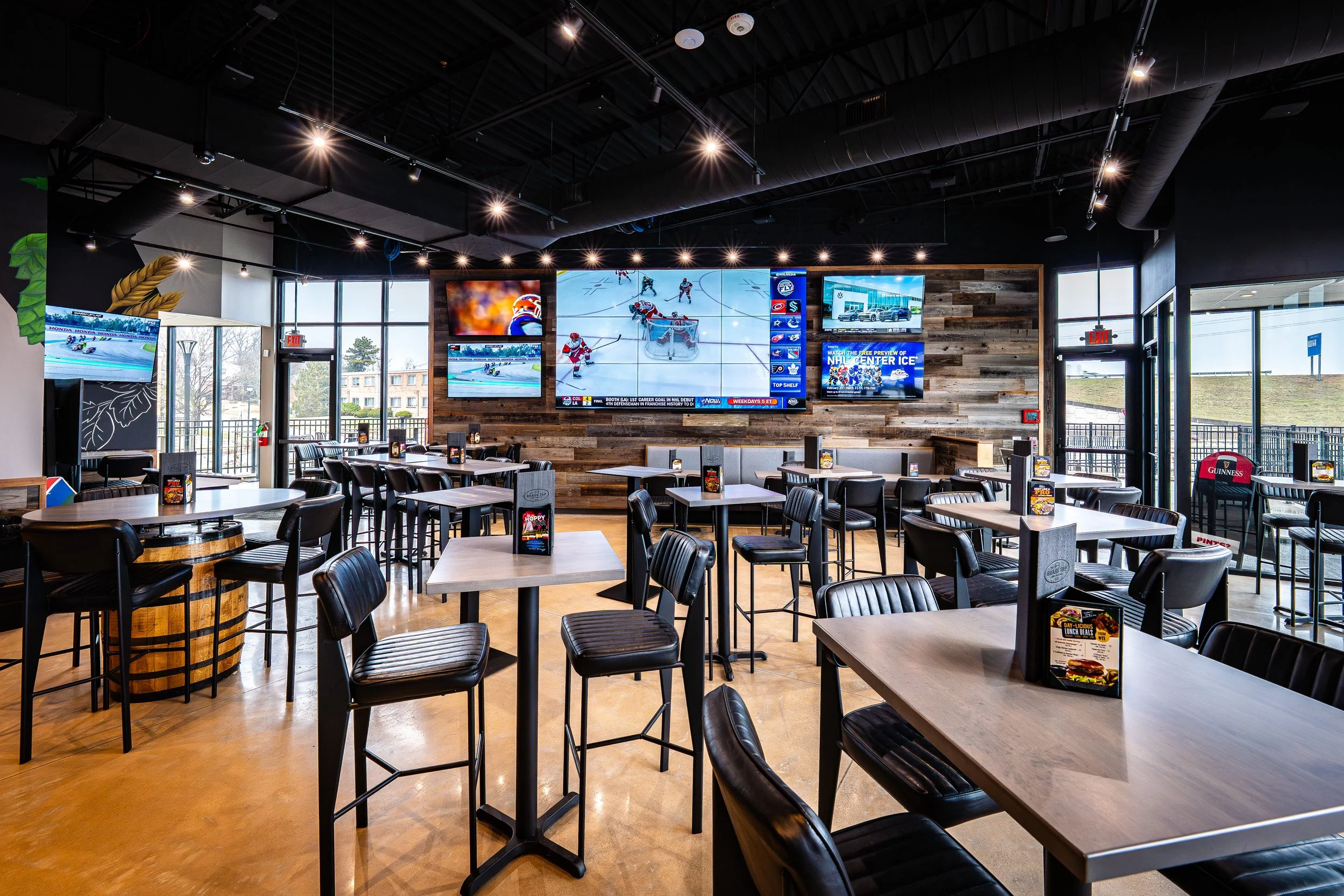 Working closely with the Patels and The Brass Tap’s headquarters in Tampa, our team massaged the initial design to meet local codes and requirements. Inside the space, together we developed an interior material palette within the given parameters to create an authentic Brass Tap atmosphere for St. Louis. We were glad to work with local artisans, including Dan Ricketts at St. Louis Sign & Mural and Drew Chostner at St. Louis Barrel Company. Our construction team went the extra mile to deliver the space on-time and under budget.